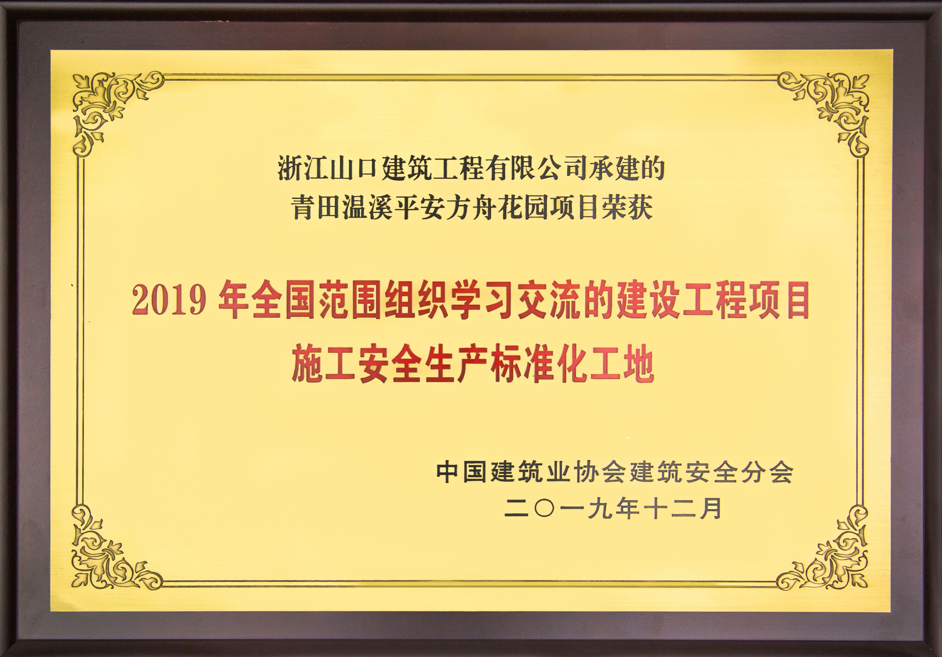 2019年温溪平安方舟花园项目荣获全国建设工程项目施工安全生产标准化工地