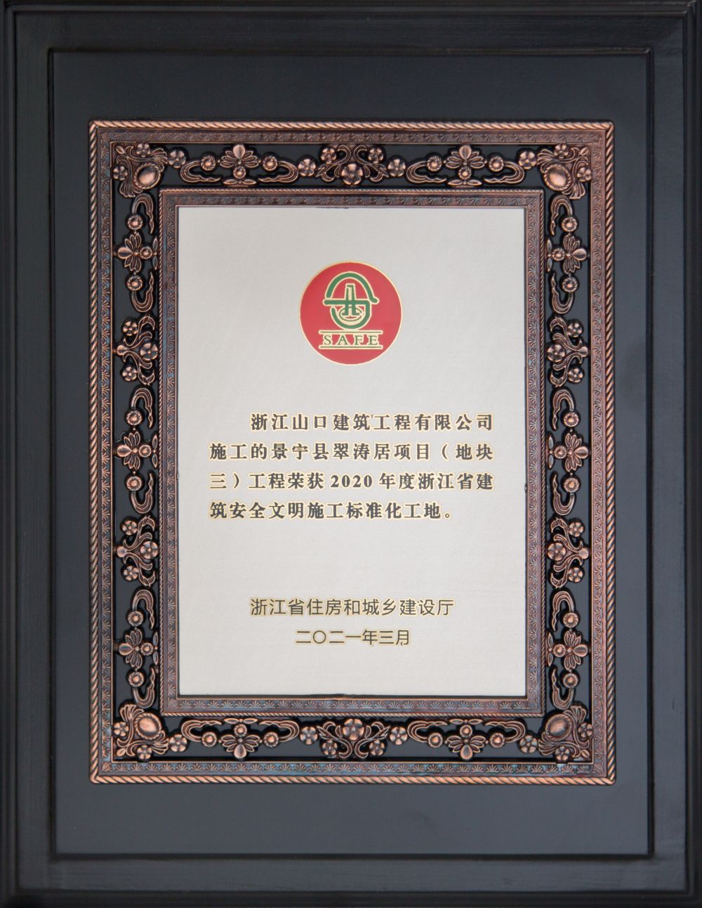 2020年景宁翠涛居项目荣获浙江省建筑安全文明标准化工地
