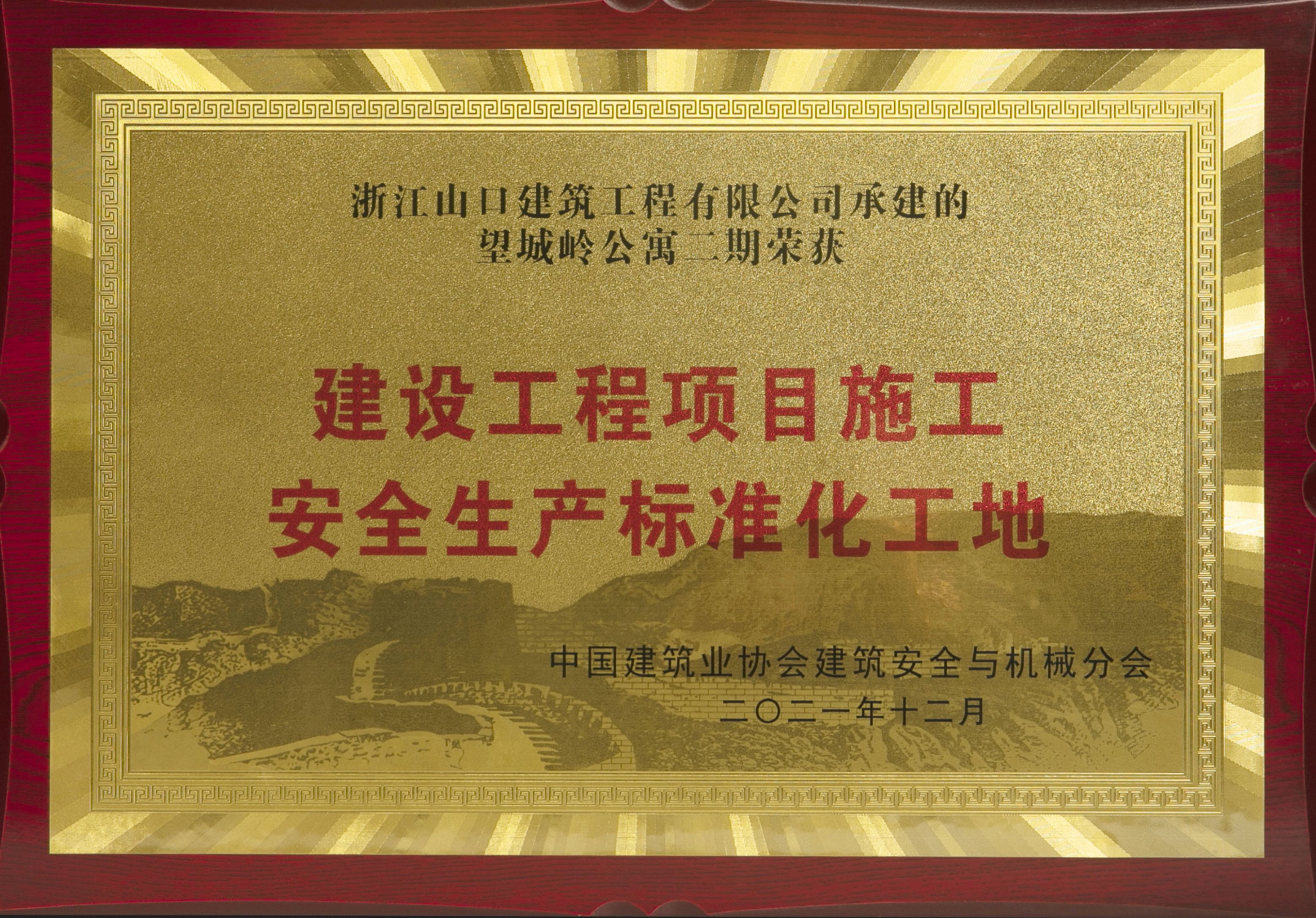 2021年望城岭公寓二期荣获全国建设工程项目施工安全生产标准化工地